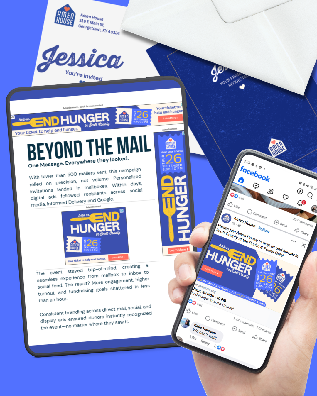 Amen House is a small non-profit in Georgetown, KY with a straightforward goal: fill an event and drive donations. Instead of betting on one channel, we helped to build a journey people could actually follow.
